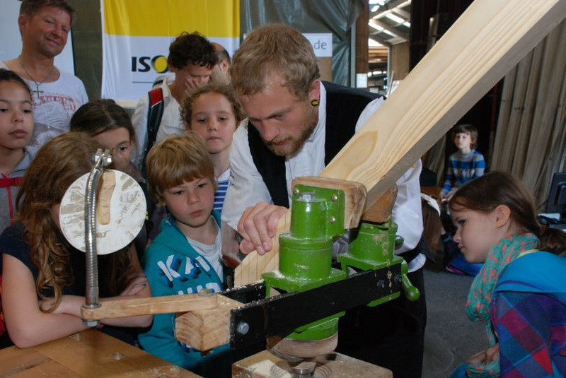 Außerdem warb Philipp Stich, Bronzemedaillengewinner von Worldskills 2011, für den Zimmerer-Beruf. Unter seinen Augen konnten Schüler und Schülerinnen sich an der Säge versuchen.Rund 80 Schüler nahmen diese einmalige Chance wahr und ließen sich von ein paar Kniffe im Umgang mit den japanischen Handsägen zeigen.