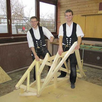 Wie immer am Ende eines Jahres konnte die Zimmerer-Nationalmannschaft neue Mitglieder willkommen heißen. Martin Fricke (20) aus Zwönitz in Sachsen und Simon Rehm (20) aus Hilpolstein in Bayern sind die Neuen im Team. Ihre Aufnahme in das nationale Team verdanken sie ihrem Erfolg bei den Deutschen Meisterschaften im November 2012 in Trier. Fricke ist Bundessieger, Rehm Vize-Meister. Bevor sie das gemeinsame Training mit den anderen Teammitgliedern Andreas Fichter, Lucas Neidhardt und Kevin Weidner aufnehmen, gab es ein "Spezialtraining" zur Schifttechnik. Trainer Michael Rieger führte ausführlich in die "hohe Kunst des Zimmererhandwerks" ein. Ab Januar 2013 wird dann gemeinsam trainiert, u.a. auf der Messe BAU in München. mehr